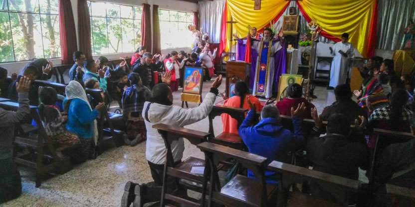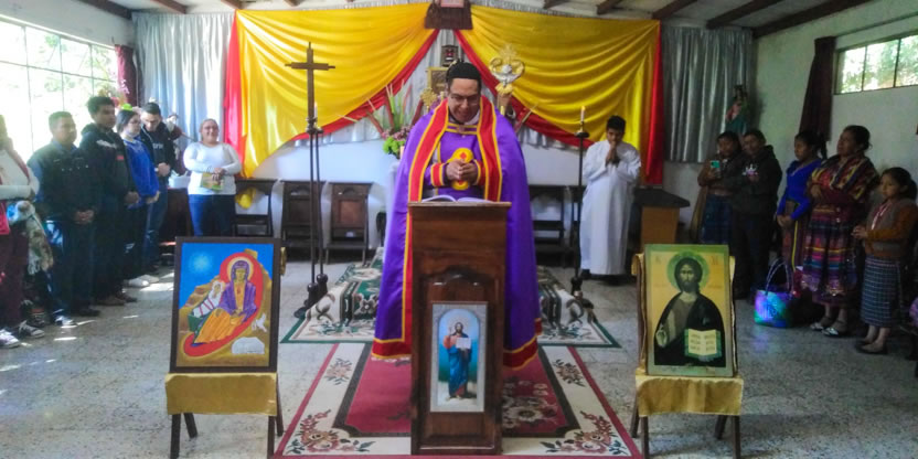 | 28: DIVINA LITURGIA EN LA SEDE DE LA PARROQUIA ESPÍRITU SANTO, LOS GUATES, SAN JUAN SACATEPÉQUEZ. |