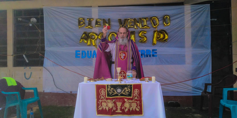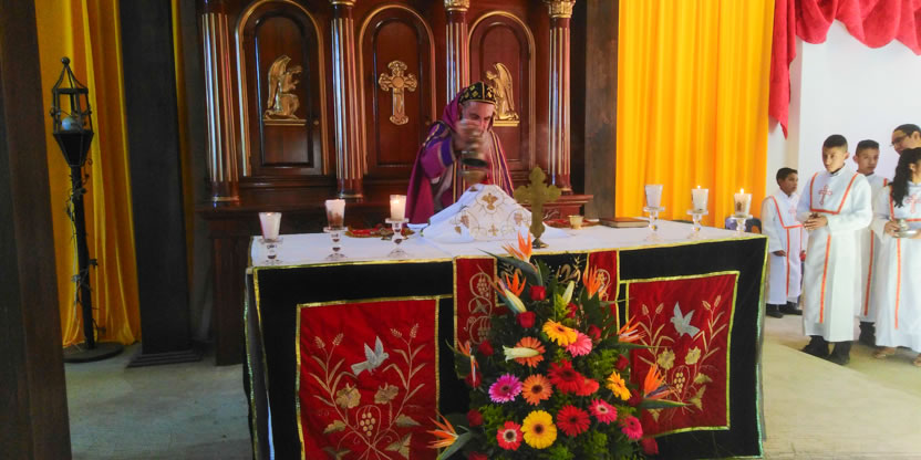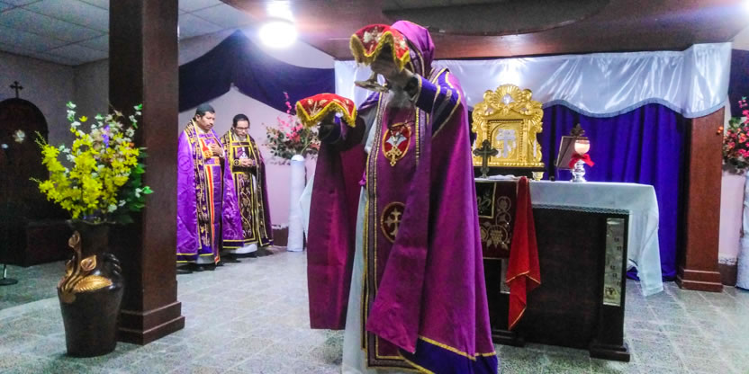 Dentro del marco de la celebración de la divina liturgia, el arzobispo, acompañado por el padre Pedro Martínez, encargado pastoral de ese centro pastoral, oraron por todos los fieles.
