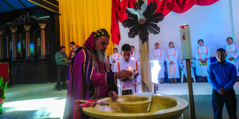Dentro del marco de la celebración de la divina liturgia, se administraron los sacramentos del bautismo, la crismación y la comunión a dos niños: Luis Enrique y Xavi Damián.