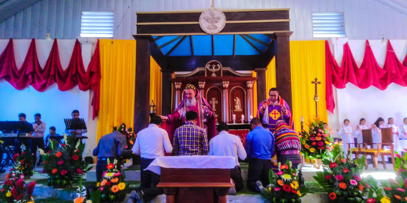 El domingo 28, por la tarde, el arzobispo llegó hasta la sede de la parroquia Espíritu Santo de Los Guates, San Juan Sacatepéquez, para presidir la celebración de la divina liturgia. Le acompaño el Padre Orlando López, párroco local.