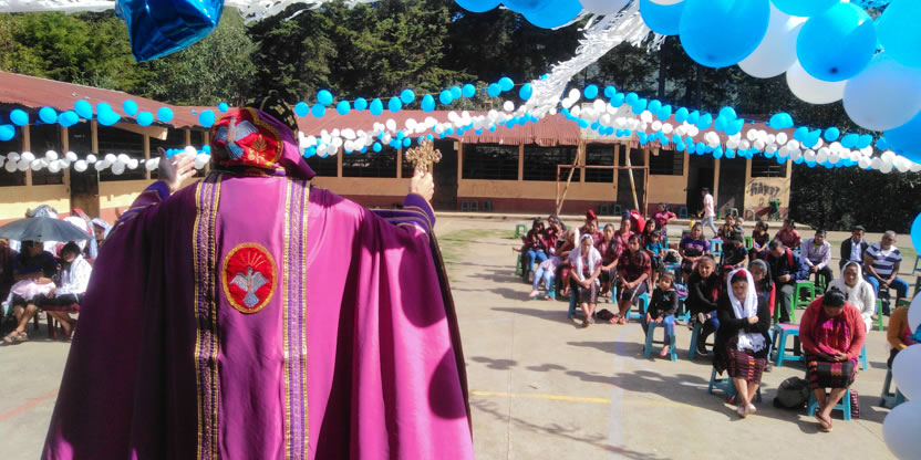 El lunes 29 de noviembre, por la mañana, el arzobispo llegó hasta la cima de los Cuchumatanes en donde, en el patio de una escuela del Municipio de Santiago Chimaltenango, se habían congregado los miembros de la comunidad local, para tener la celebración de la divina liturgia con el arzobispo.