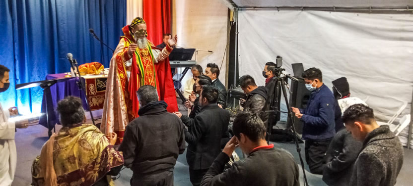 Después de la bendición de la estructura del techo, el arzobispo presidió la celebración de la divina liturgia, habiendo contado con la participación de numerosos hermanos, miembros de la comunidad.