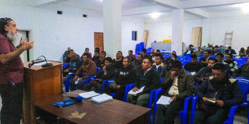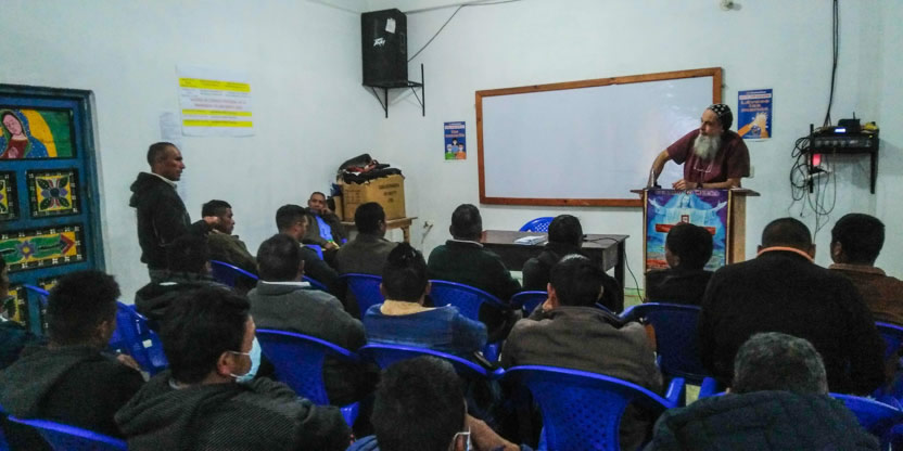 Depués de la formación impartida por el arzobispo, se entabló diálogo entre los participantes en el decanato del norte de Huehuetenango, en San Mateo Ixtatán.