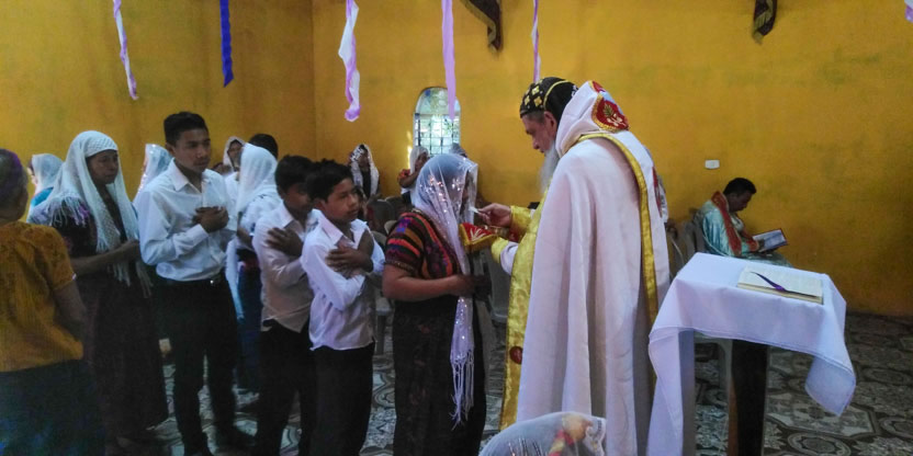 Dentro del marco de la celebración de la divina liturgia, se administraron los sacramentos de la iniciación cristiana a cuatro hermanos. Tres niñas y un adulto que, además celebraría su matrimonio.