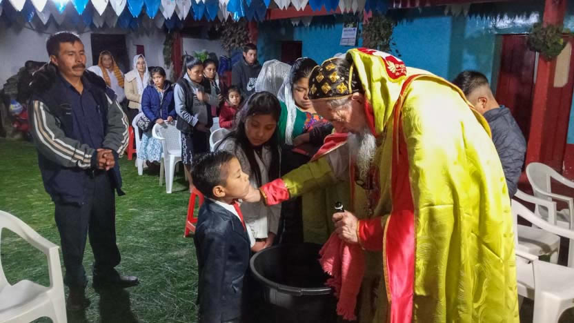 El sábado 5 de febrero, por la noche, al finalizar la celebración de la divina liturgia, el arzobispo invitó a los hijos y nietos de los hermanos Juan Juventino Reyes y Andrea Sontay, fundadores de la comunidad de El Rodeo, para orar por ellos.
