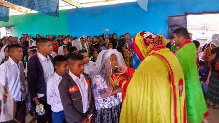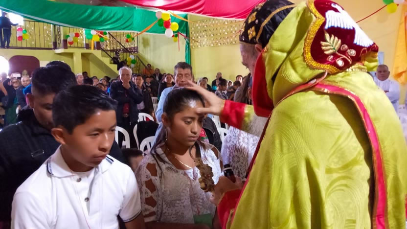 Dentro del marco de la visita a la comunidad San Pedro, se administró la confirmación de la crismación y el envío misionero a varios jóvenes de la comunidad. Se trata de Miguel Junior, de Luis, Macario, Rolando Ronaldo, Josselyn y Gabriela.