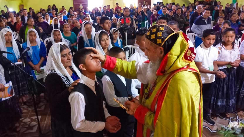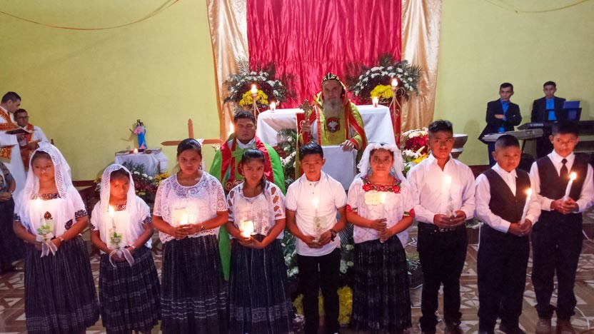 La visita a la comunidad de Tzalamilá, concluyó con la celebración de la divina liturgia. Concelebraron los padres Alexander y Gustavo y participaron los diáconos Sergio y Lorenzo.
