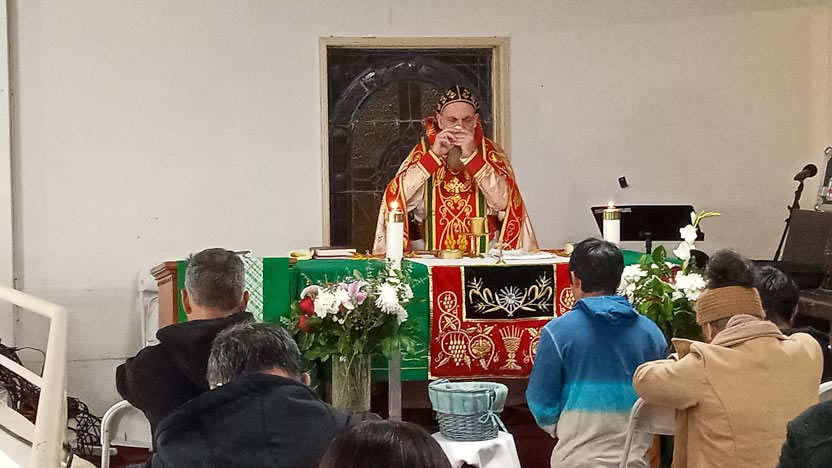 El jueves 24, en el marco de una visita muy breve que hizo el arzobispo a Los Angeles, California, visitó la comunidad de El Pescador, para celebrar los divinos misterios.
