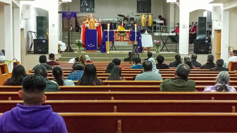 Seguidamente, el arzobispo presidió la celebración de la divina liturgia, para los hermanos presentes, de la comunidad Santa María de Guadalupe de Riverside.