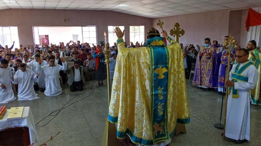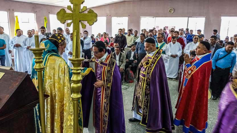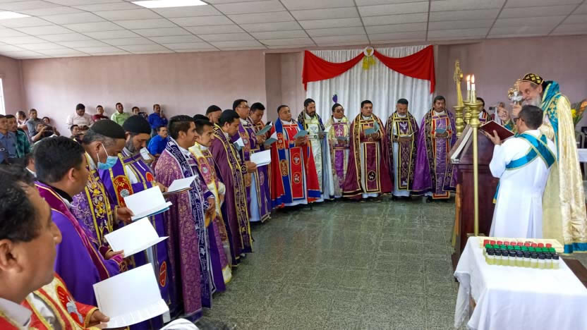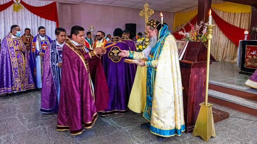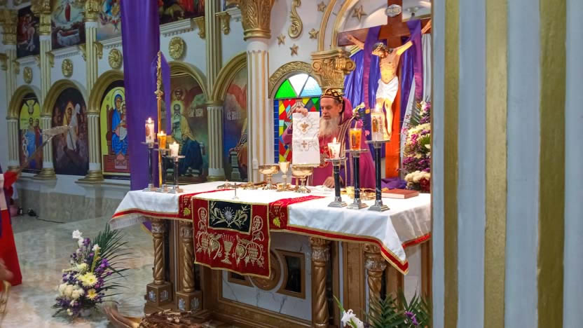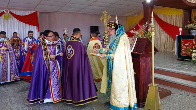 A continuación, el arzobispo presidió la celebración de la divina liturgia, la cual fue concelebrada por los diez y nueve presbíteros que ejercen el ministerio presbiteral en esta zona.
