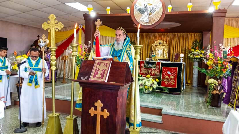 Seguidamente, el arzobispo presidió la celebración de la divina liturgia, la cual fue concelebrada por el Padre Santos Acosta, párroco local.
