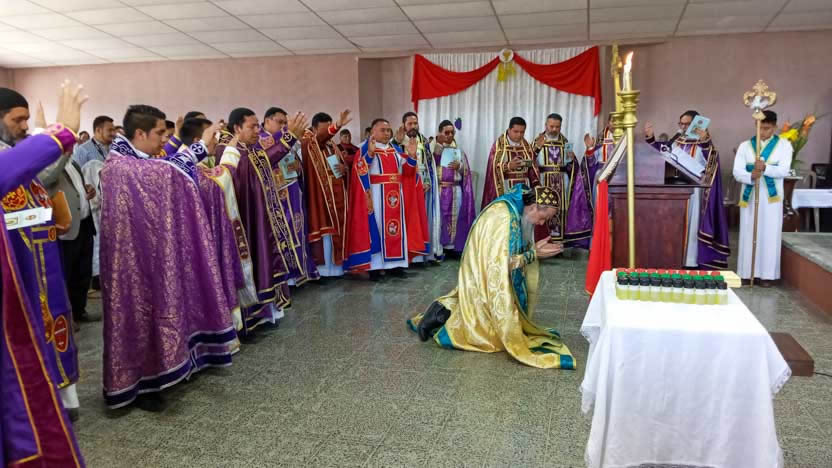 | 12: ENTREGA DEL SANTO CRISMA Y DE LOS ÓLEOS DE CATECÚMENOS Y ENFERMOS AL PRESBITERIO DE HUEHUETENANGO. |
