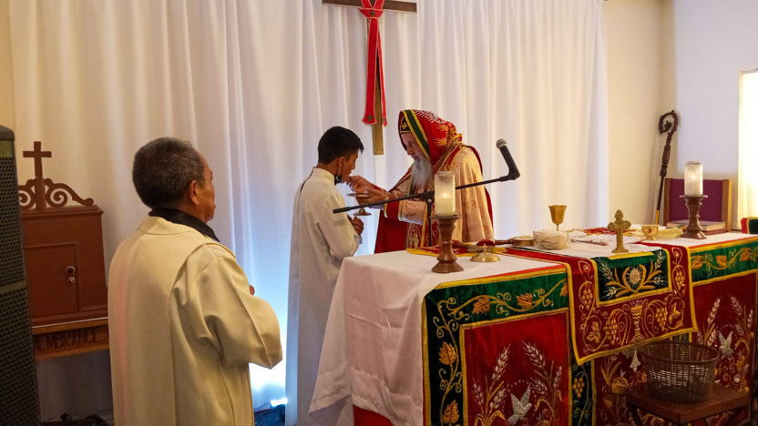 Finalmente, el arzobispo presidió la cebración de la divina liturgia, en la cual participaron todos los hermanos presentes con una actitud de sincera devoción.