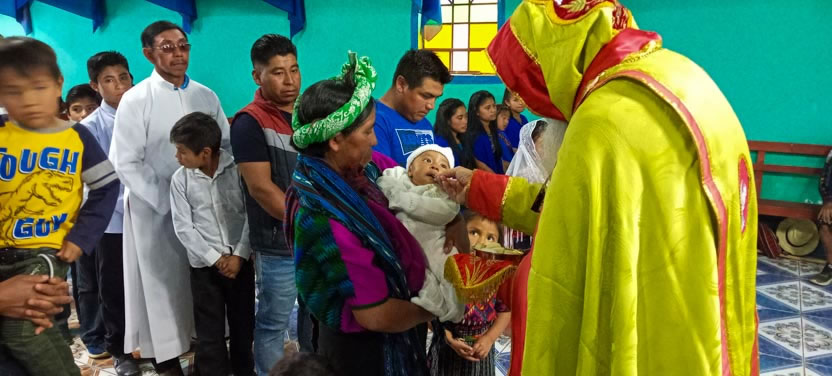 Dentro del marco de la visita a la comunidad de Tzununá, se administraron los sacramentos de la iniciación cristiana al niño Mynor, nieto del líder de la counidad, hermano Miguel.