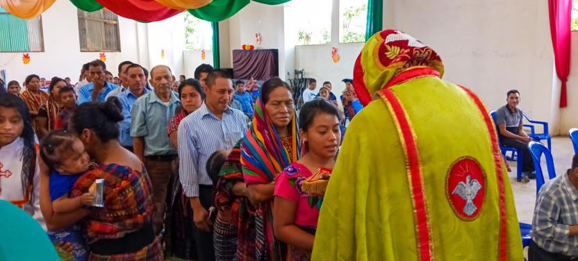 El domingo 12 de junio, por la tarde, el arzobispo llegó hasta la sede de la parroquia del Espíritu Santo, de Los Guantes, San Juan Sacatepéquez, Guatemala.