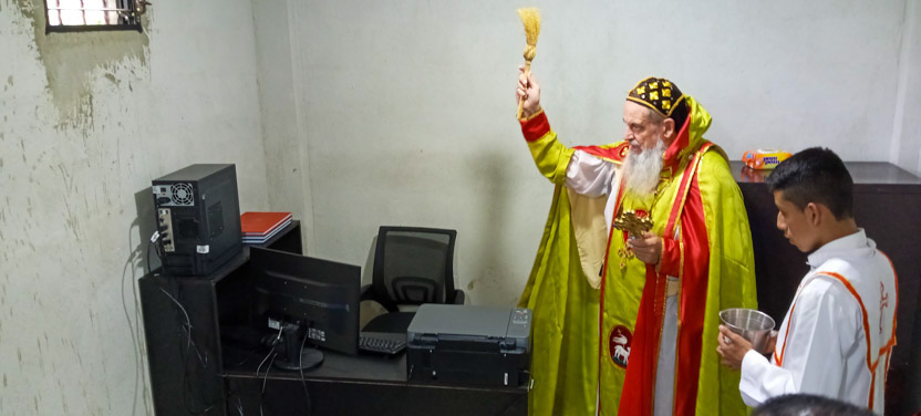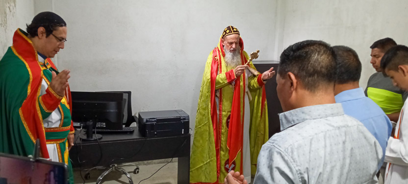 Finalmente, el párroco y el consejo pastoral, pidieron al arzobispo que hiciera la bendición de la recién organizada oficina parroquial, en el sótano de la iglesia.