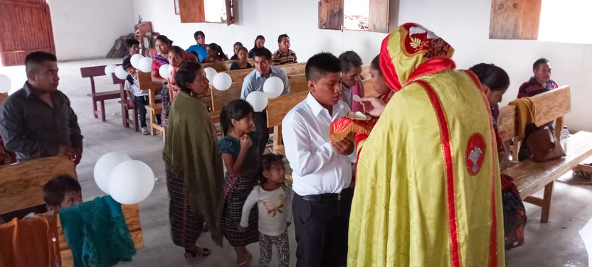 Dentro del marco de la celebración de la liturgia en la comunidad de Chuitzanchaj, se administraron los sacramentos de la iniciación cristiana a los niños Manuel y Danny.