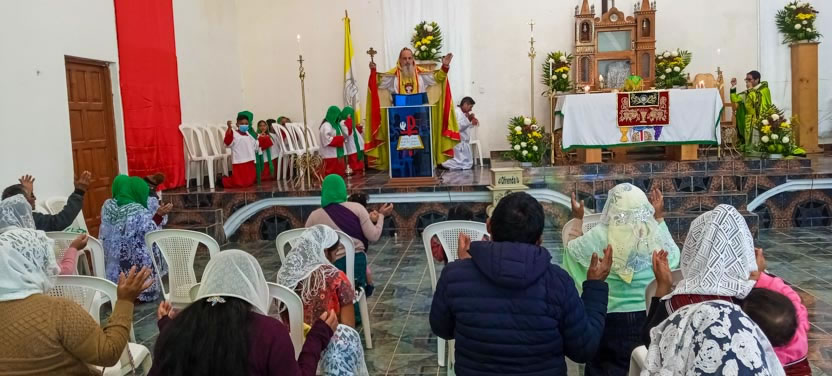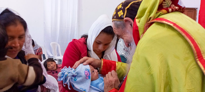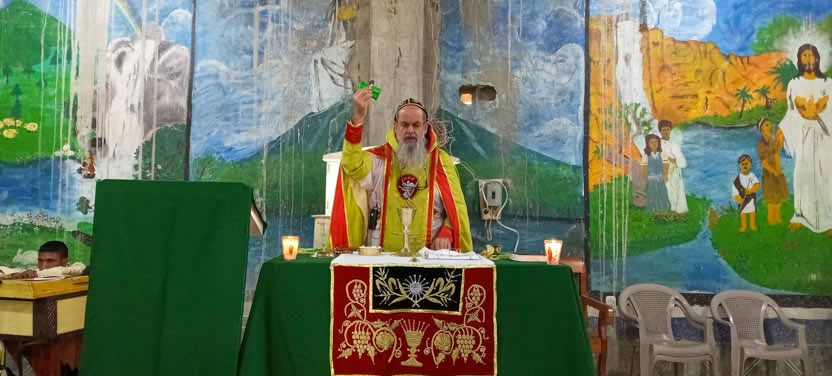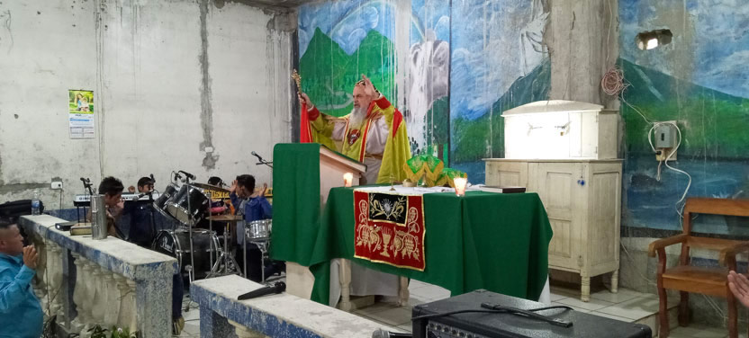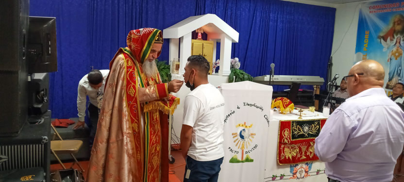 La visita a la comunidad Pacto Divino concluyó con la celebración de la divina liturgia para los miembros de la comunidad, que estaban participando con devoción.