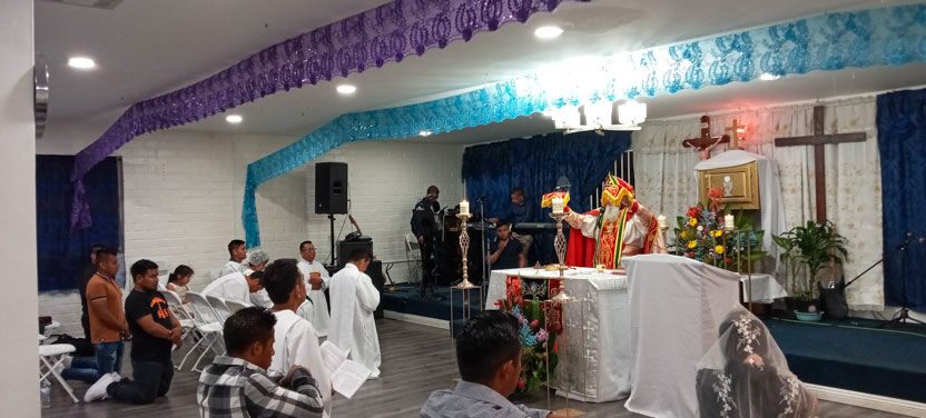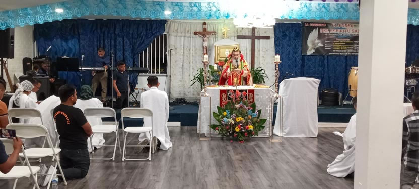 El jueves 7 de julio, poco después del mediodía, el arzobispo llegó hasta la sede de la comunidad Sagrada Familia de Ixtenam, Santa Eulalia, acompañado por el párroco, padre Fredi Mux.