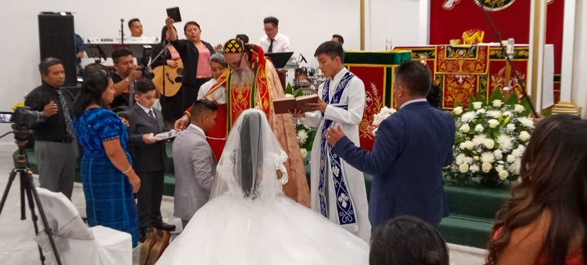 Dentro del marco de las celebraciones litúrgicas, se administró el sacramento del matrimonio a Juan y a Marylyn, quienes desde hacía largo tiempo habían venido preparándose.