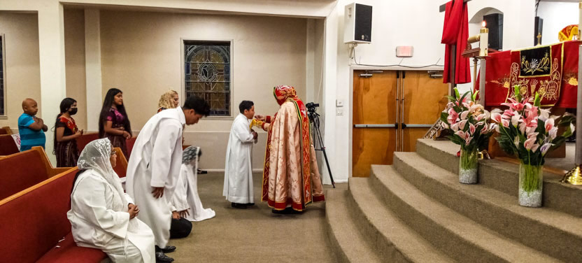 Finalmente, el arzobispo presidió la celebración de la divina liturgia, para los catequistas y otros fieles que estaban participando en la celebración parroquial.