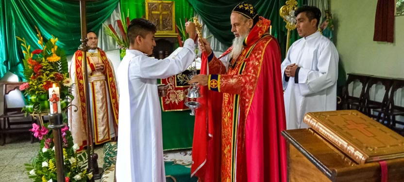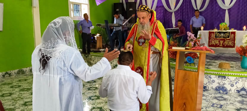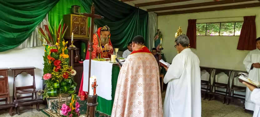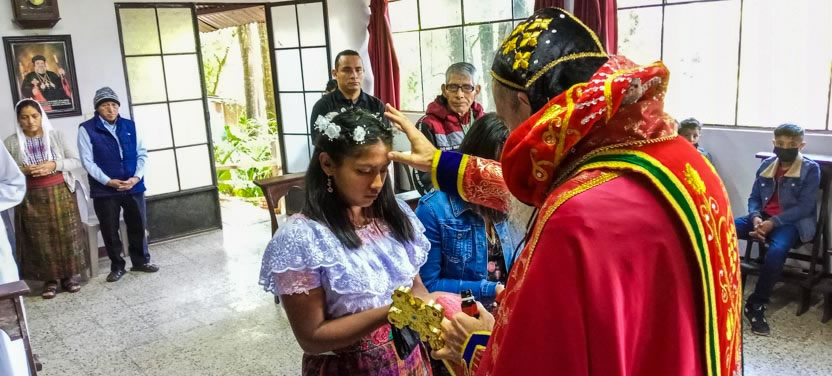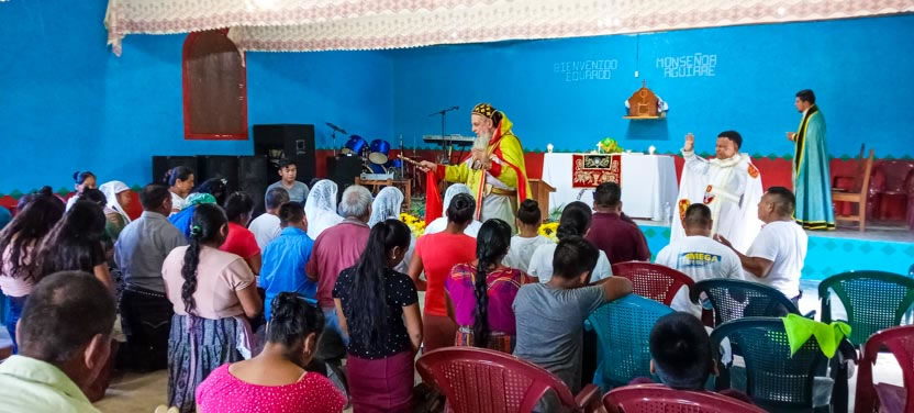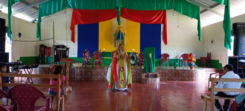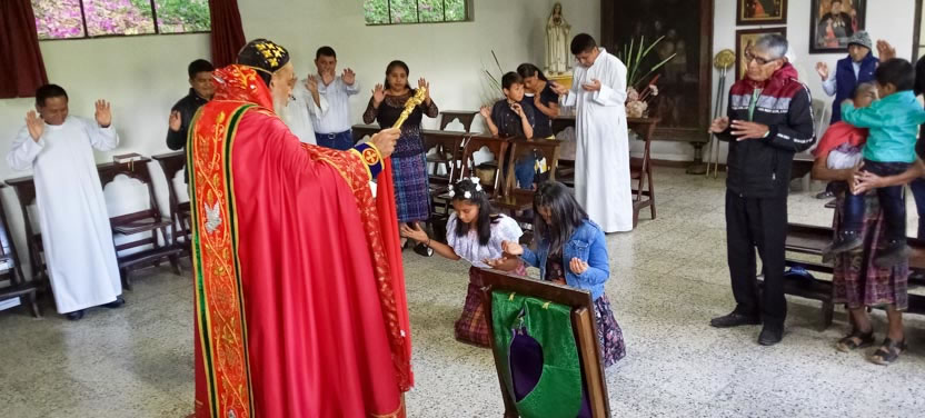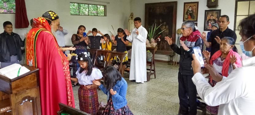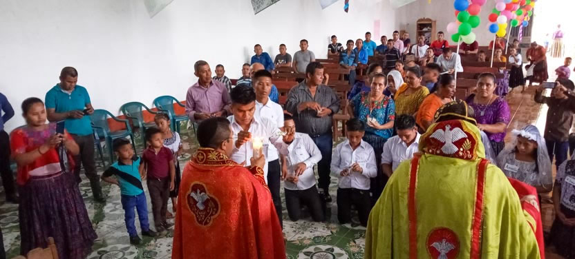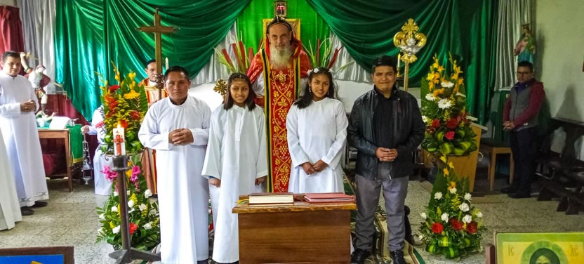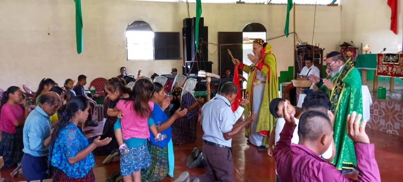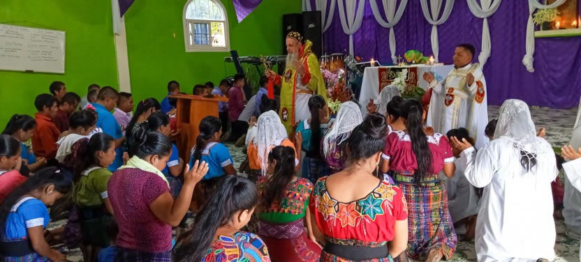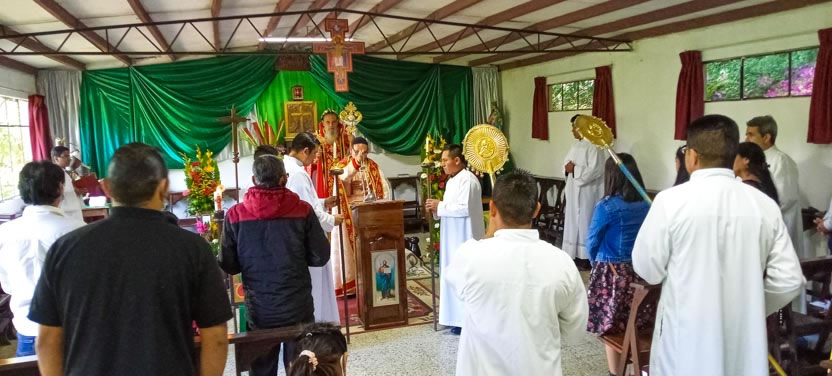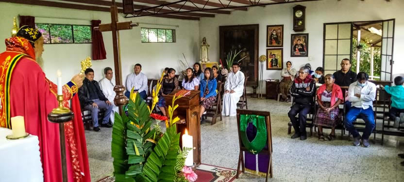 Finalmente, el arzobispo presidió la celebración de la divina liturgia con los hermanos de la sede parroquial de Yalicoc, Raxruhá. Concelebró el padre Juan Sebastián, párroco local.