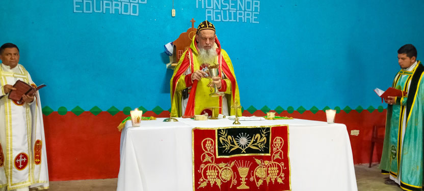 Finalmente, el arzobispo presidió la celebración de la divina liturgia con los hermanos de la comunidad de Santiago Ixcán, habiendo concelebrado los padres Robinson y Jesús.