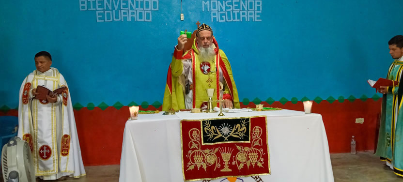 Finalmente, el arzobispo presidió la celebración de la divina liturgia con los hermanos de la comunidad de Sesuchaj. El padre Juan José Lucero concelebró con el arzobispo.