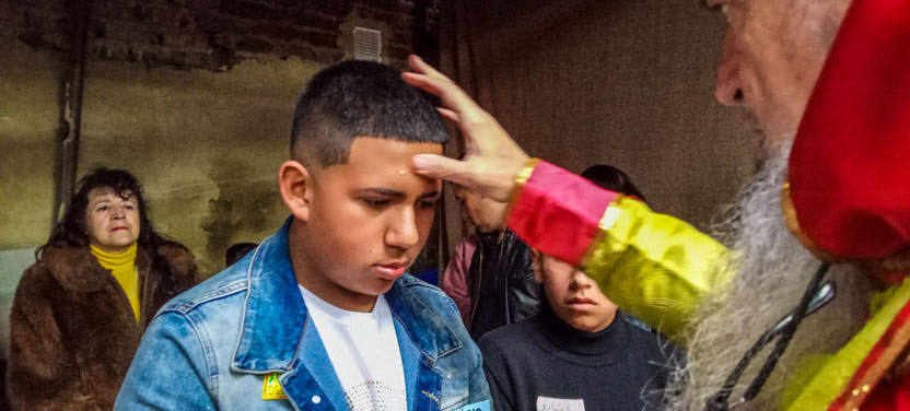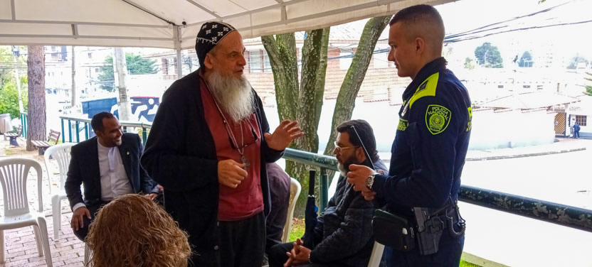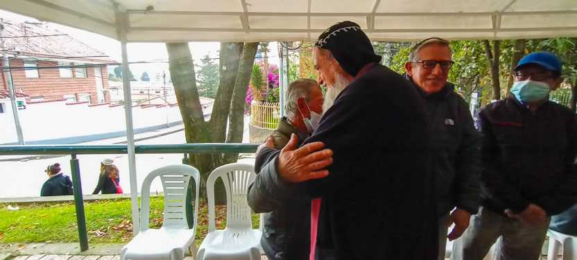 El mismo día 22, a mitad de la mañana, después de una caminata, pues ese día estaba prohibida la circulación de vehículos en Bogotá, se llegó hasta el lugar en el que el Padre Michael se reúne para celebrar la divina liturgia con los hermanos del Barrio María Cristina.