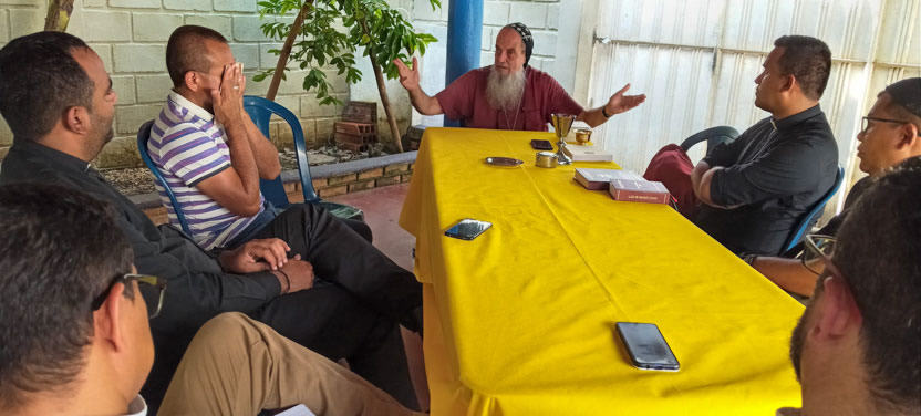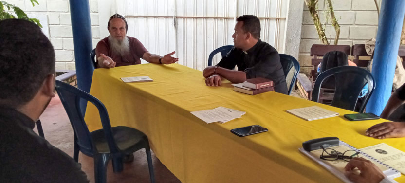 Después de la reunión con el pueblo de Dios, se tuvo una breve reunión con los padres Michael y Jesid, así como con el diácono Andrés Herrera, quienes ejercen pastoralmente en el área.
