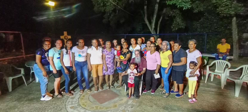 | Al caer del día, el arzobispo, junto a los demás presbíteros que estaban participando en el encuentro, llegaron hasta el parque de la comunidad de Turbaco, en donde, los fieles de la comunidad dieron una calurosa bienvenida al arzobispo. |