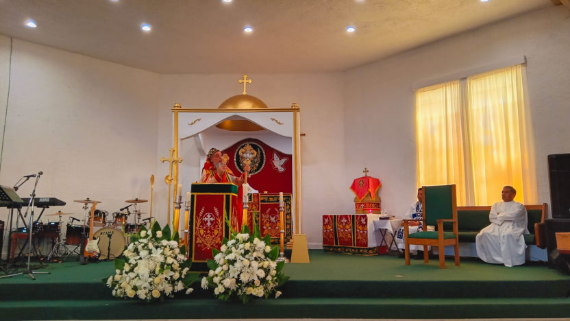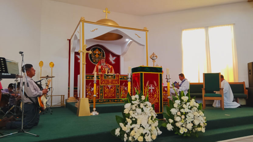 Antes de comenzar con la celebración de la divina liturgia, el arzobispo exhortó a los hermanos a intercambiarse el saludo de paz, como señal de la comunión que se vive.