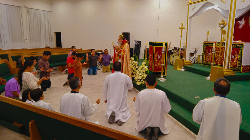 Después de invitar al arrepentimiento, los hermanos hicieron la confesión de sus pecados y, seguidamente, el arzobispo oró, implorando la efusión del Espíritu Santo. |