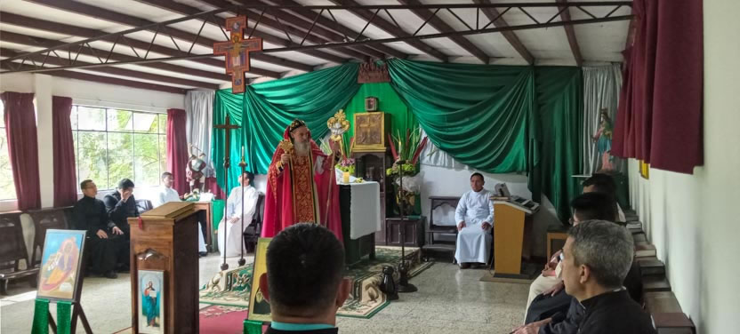 Dinalmente, el arzobispo presidió la celebración de la divina liturgia, como conclusión del ciclo académico 2022, del seminario Santa María del Nuevo Éxodo.