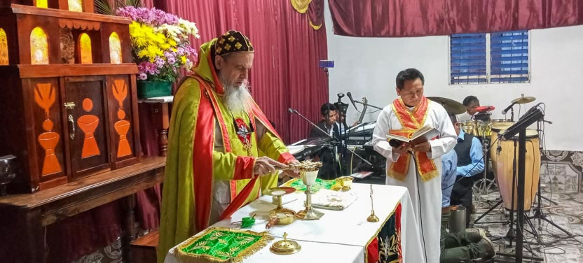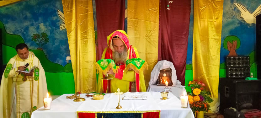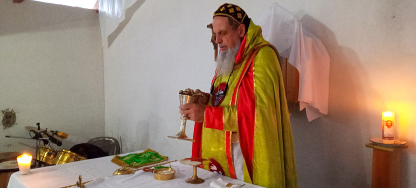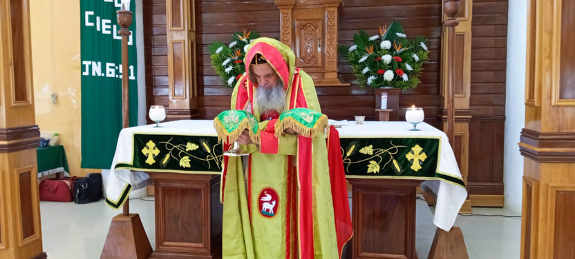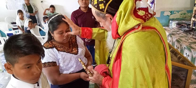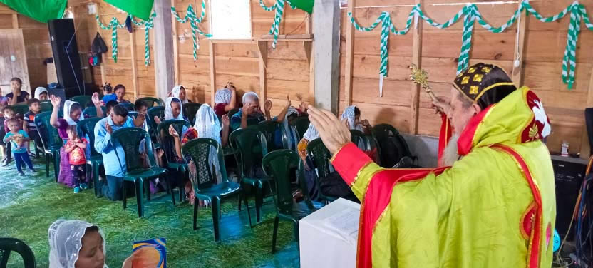 Poco después del medio día, el arzobispo concluyó la visita a la comunidad de Nueva América, con la celebración de la divina liturgia, concelebrada por el Padre Huego.