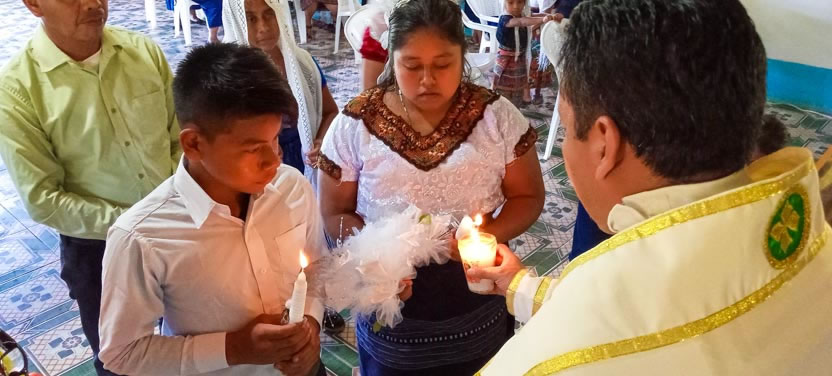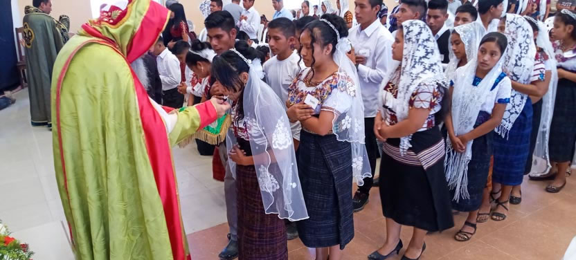 Dentro del marco de las celebraciones litúrgicas en la comunidd de Nueva América, del municipio de Nebaj, también se administró la confirmación y el envío misionero a Diego y a Laura.