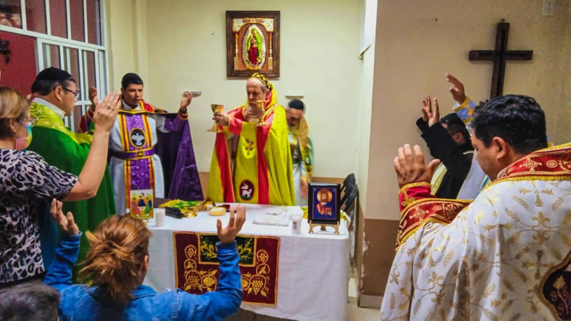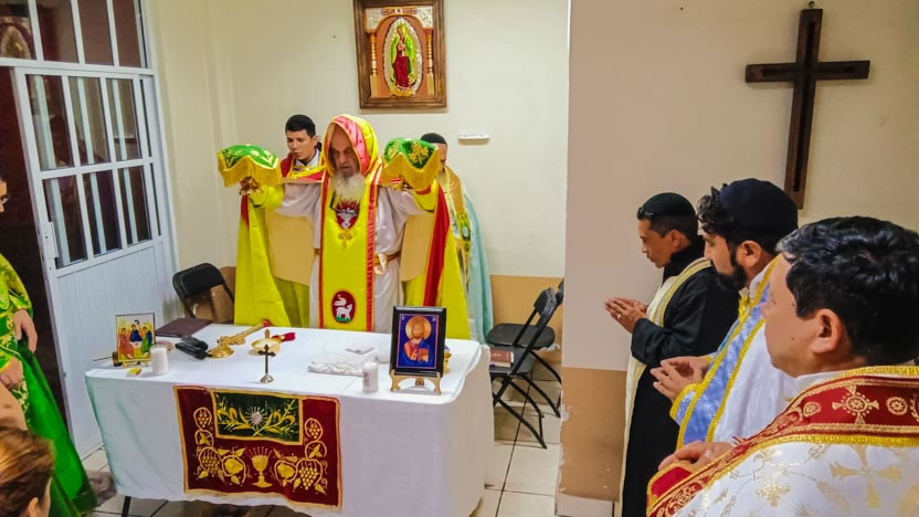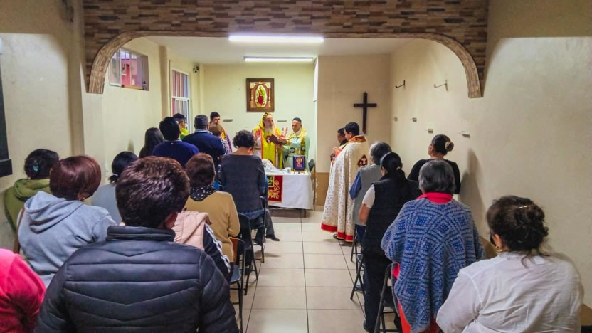 La actividad en la comunidad de Zumpango culminó con la celebración de la divina liturgia. La misma fue presidida por el arzobispo y concelebrada por los seis presbíteros presentes.