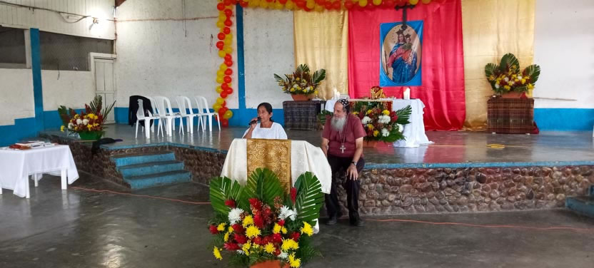 Hacia el mediodía, se comenzó con las celebraciones litúrgicas, en el área verde del Centro Misionero de Tomtem.
