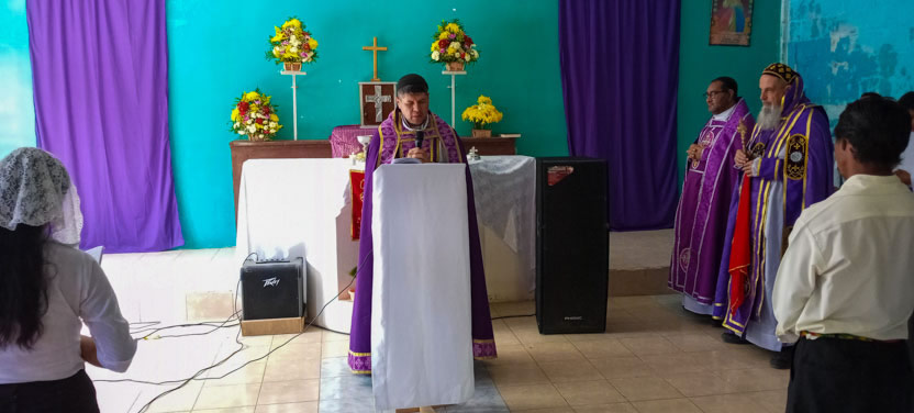Finalmente, el arzobispo presidió la celebración de la divina liturgia, en la comunidad de Concepción Huista, Huehuetenango, en la cual concelebró el padre Santos Acosta, párroco local.