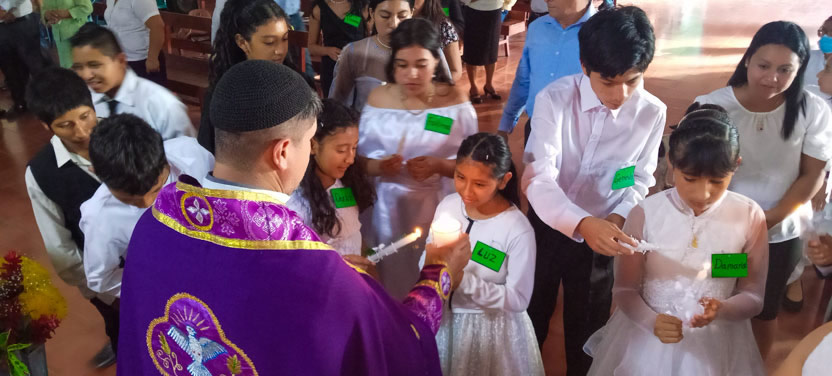 El Padre Edwin, párroco local, preparó a 17 hermanos para que fueran confirmados y recibieran el envío misionero, con la finalidad de que, más hermanos se involucren en la acción misionera.