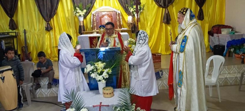 Seguidamente, el arzobispo presidió la celebración de la divina liturgia, la cual fue concelebrada por los padres Edwin, párroco local y Ángel Cáseres, quien acompañaba al arzobispo.