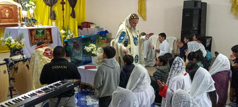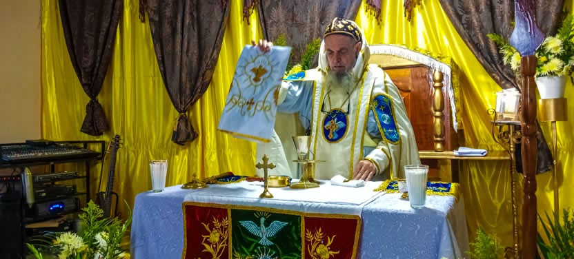 La visita a Guaymando concluyó con la celebración de la divina liturgia, presidida por el arzobispo y concelebrada por los padres Edwin, párroco local y Ángel Cáseres, quien acompañaba al arzobispo.