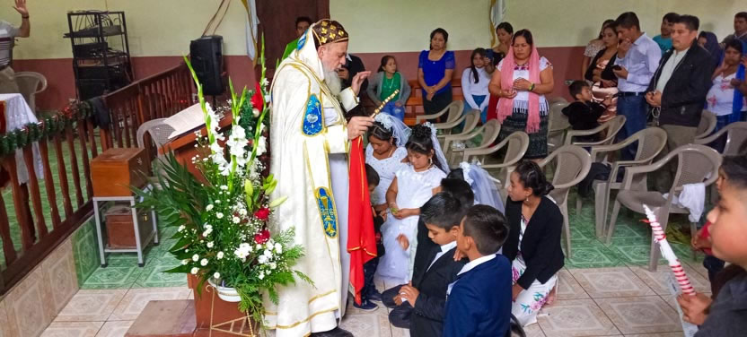 El martes 27 de diciembre, el arzobispo llegó hasta la aldea de Tzisbaj, para visitar a los hermanos de la parroquia San Ignacio de Antioquía, que celebran el primer aniversario de la parroquia.