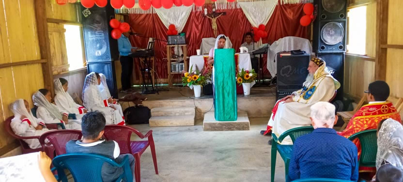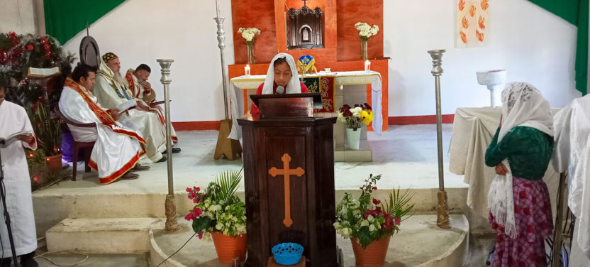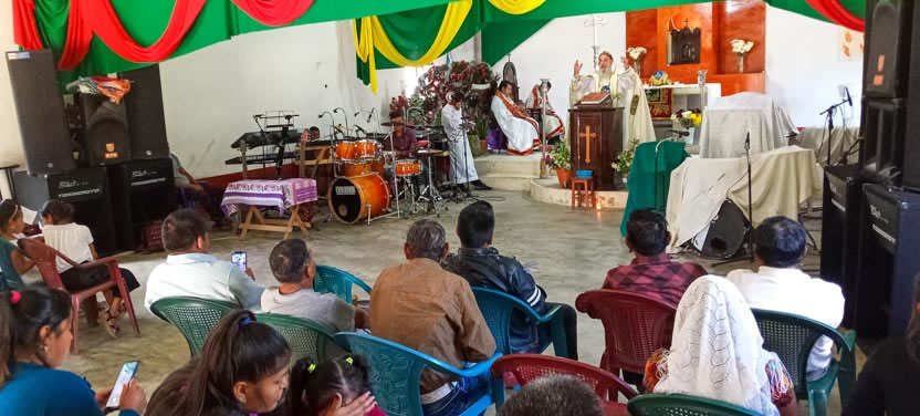 | 28: DIVINA LITURGIA EN LA SEDE DE LA PARROQUIA EL BUEN PASTOR, AMPARO AGUA TINTA, CHIAPAS, MÉXICO. |