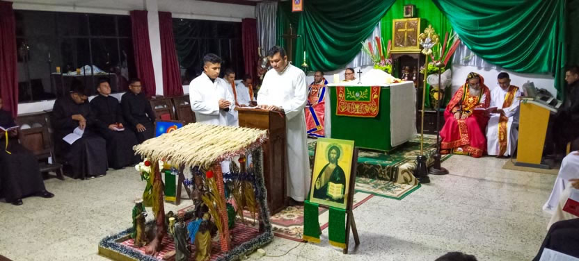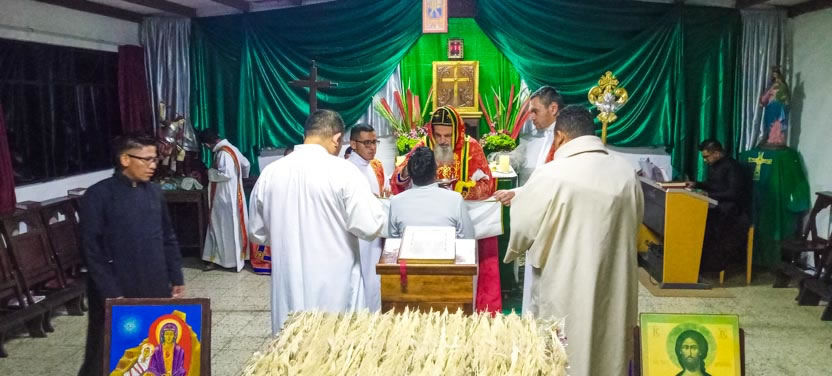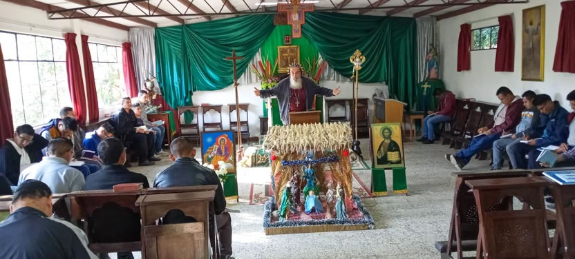 La primera jornada de los ejercicios espirituales del seminario concluyó con la celebración de la divina liturgia, presidida por el arzobispo y concelebrada por los padres Luis Uyoa y Ángel Cáseres.