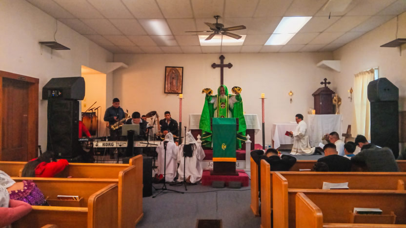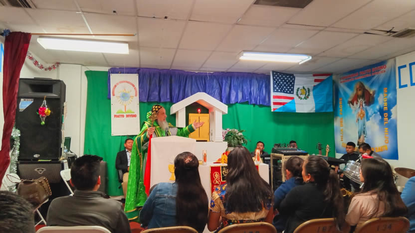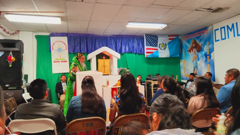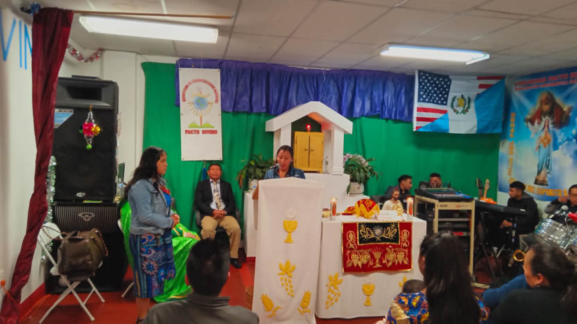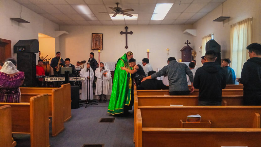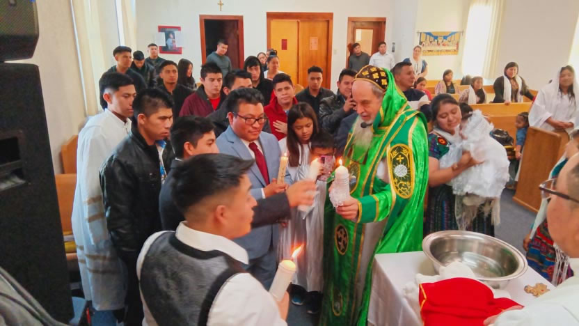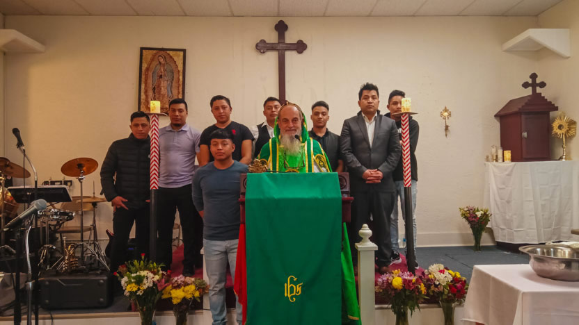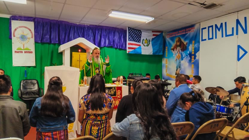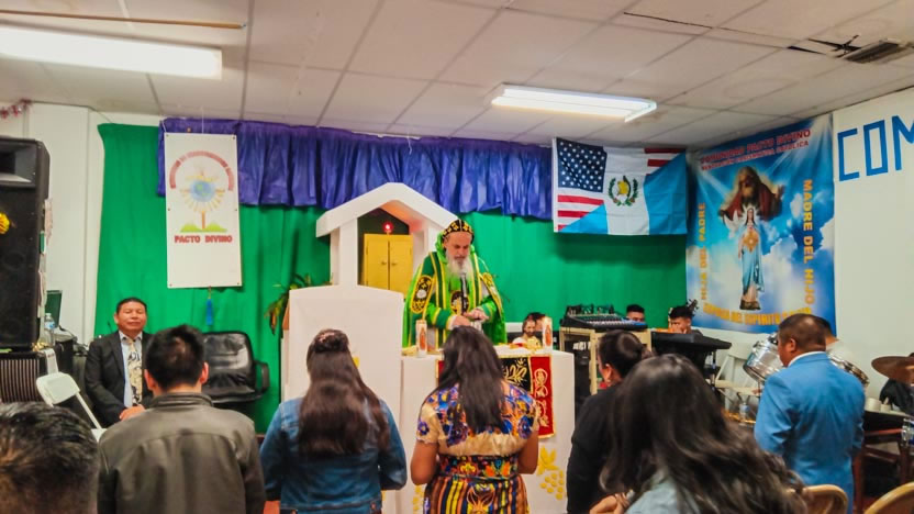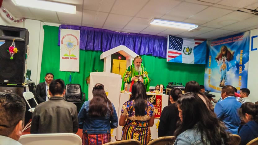 Ya bien entrada la noche, el arzobispo llegó hasta la comunidad Poder del Espíritu Santo, ubicada en el centro de Los Ángeles y formada, en su mayoría por hermanos procedentes de la Boca Costa de Sololá.