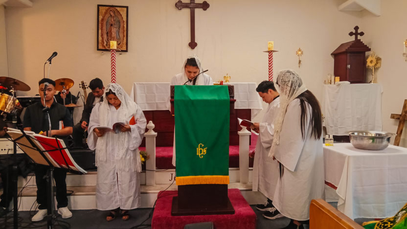 | 14: LITURGIA DE LA SAGRADA ESCRITURA CON SERVIDORES DE LA PARROQUIA SAN MIGUEL ARCÁNGEL, LOS ÁNGELES. |