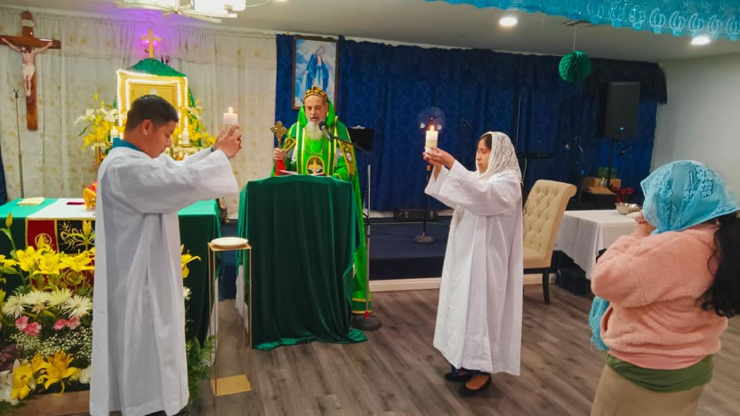 La visita a la comunidad Pacto Divino concluyó con la celebración de la divina liturgia, la cual fue presidida por el arzobispo y se contó con la devota participación de los presentes.