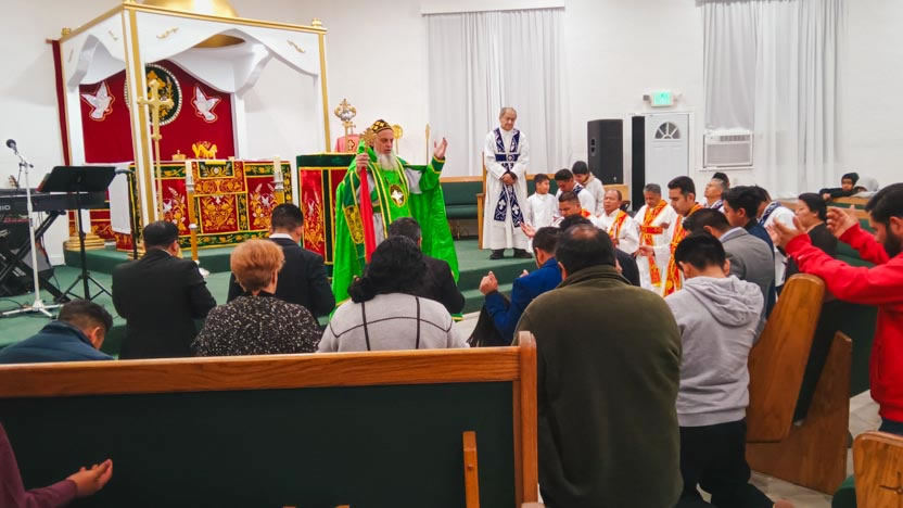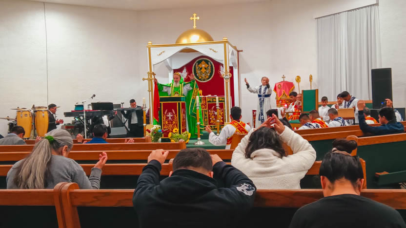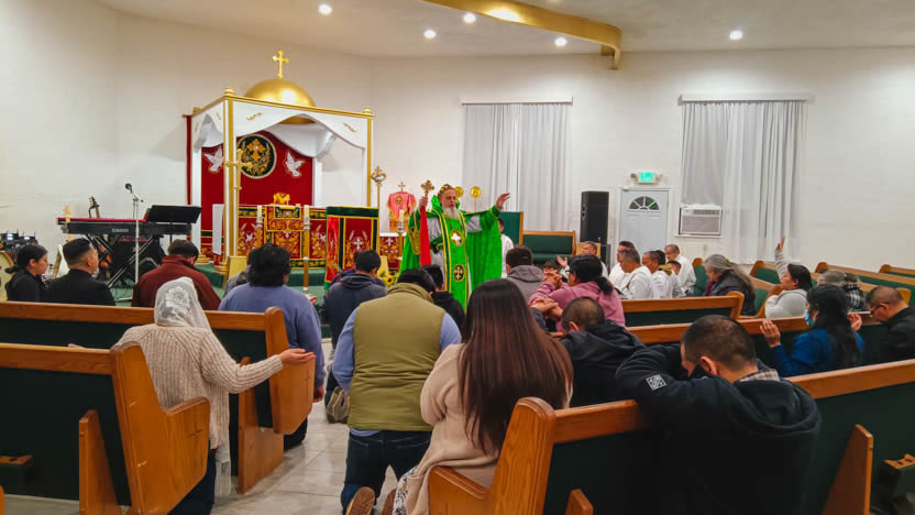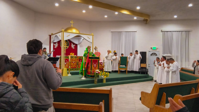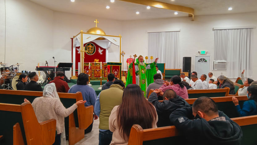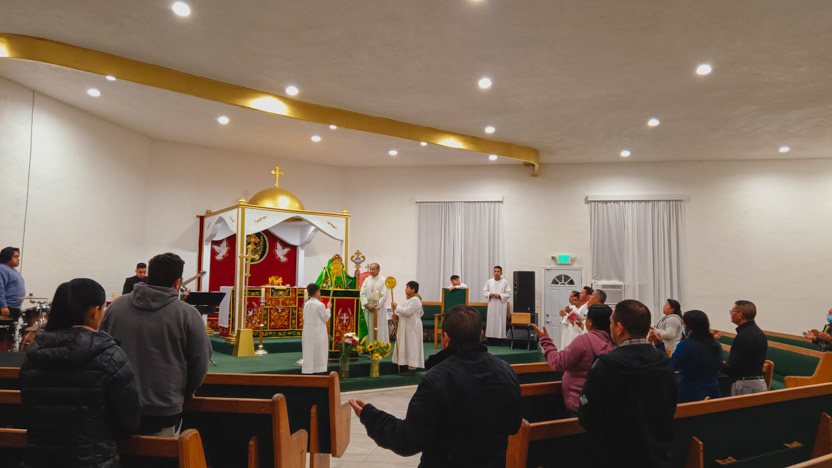 La visita pastoral a la comunidad Santa María de Guadalupe de Riverside, concluyó con la celebración de la divina liturgia, la cual fue presidida por el arzobispo.