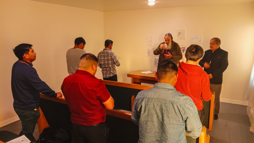 Le recibió muy cordinalmente el párroco, que le había invitado, Padre Abraham, junto a otro padre y a algunos fieles que comenzaban un grupo de estudio bíblico. |